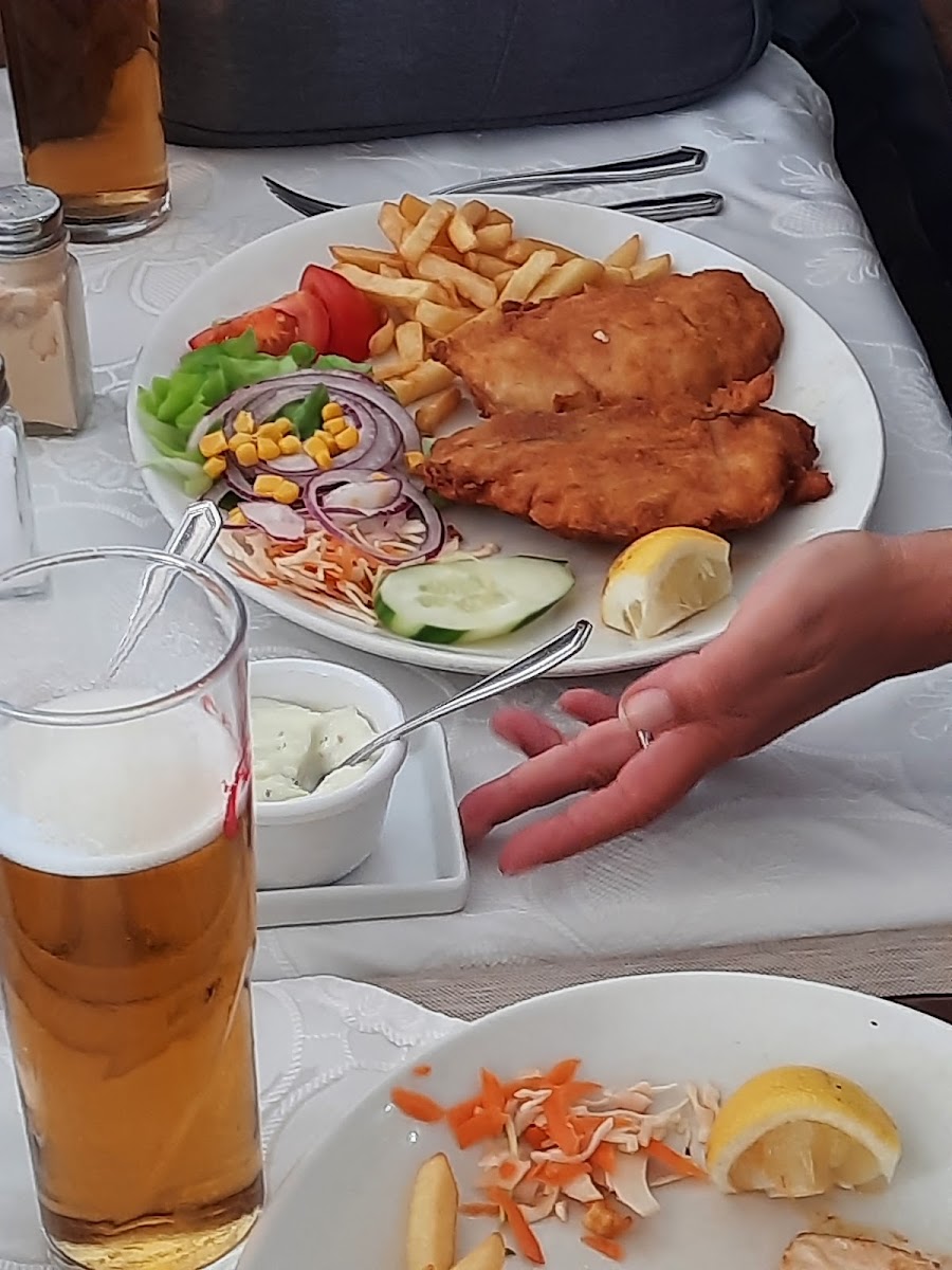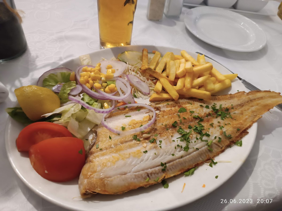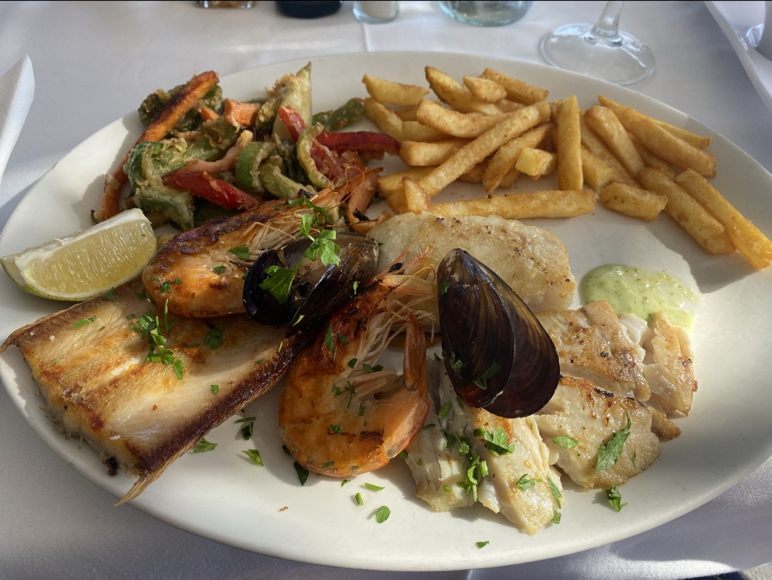 What a fantastic little restaurant! Food was fresh and tasty. I ordered the mixed fish plate and my mom had the chicken kebab. You can choose salad or veggies and chips or potatoes, we both went for veggies and chips. The mixed fish came with three sauces (aioli, spicy red and green), and the kebab had two (spicy tomato and a dark one). Both dishes were superb and I can’t wait to go back. The ice cream portion was massive, had to share with my mom because there was no way I could finish it myself!